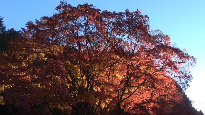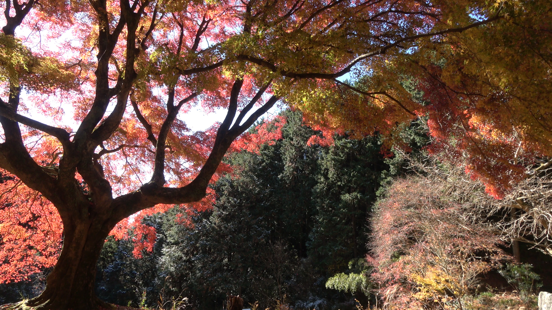 そんな歴史を秘めた由緒あるこの山奥に、みごとなカエデの大木が立ち続けています。